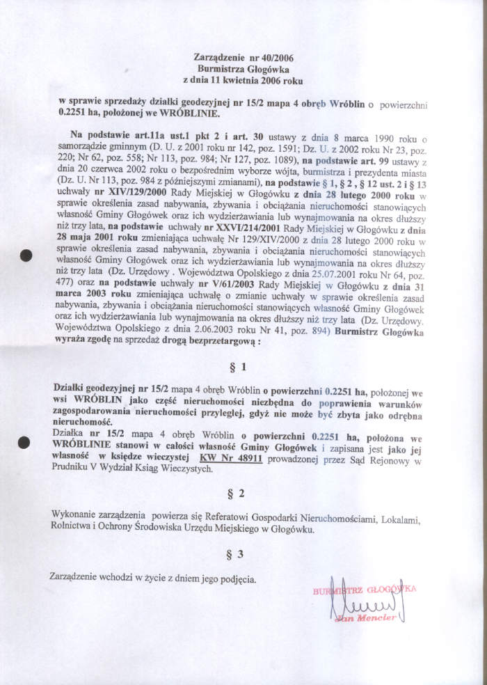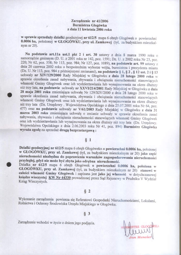 w spr. sprzedaży dzialki, pol. w Glogowku, ul. Zamkowa - 41