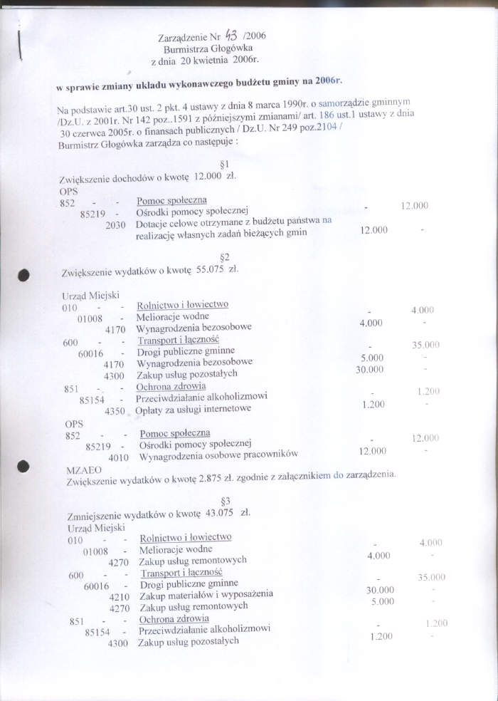 Informacja o wyborze najkorzystniejszej oferty na udzielenie i obsługę kredytu długoterminowego w wysokości do 2 032 812 PLN dla Gminy Głogówek na wydatki inwestycyjne. więcej... |  |  | 28-05-2015: